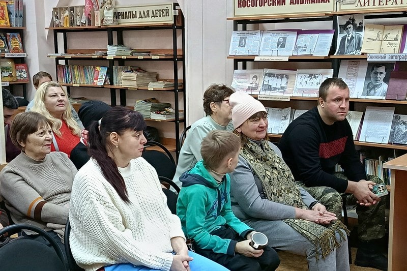 После прогулки по улицам М. Горького и Пушкина участники собрались в библиотеке, где к ним присоединились желающие узнать больше об истории поселка. Согревшись горячим чаем, все с удовольствием смотрели старые фото, которые комментировал Роман Филиппов - исследователь истории Косой Горы. Коллекция фотографи состояла из: немецких архивов, ставших доступными, фото поселка 60-х, 70-х, 80-х. Но особые эмоции вызвали видеофильмы из архива В. Апполонова - косогорца, который активно вел видеоархив своей семьи. Лыжные прогулки, виды поселка и его улиц, такие узнаваемые и родные. Демонстрации, соревнования, торжественные даты и многое другое. Все это, когда - то бывшее обыденностью, стало историей, ностальгией.