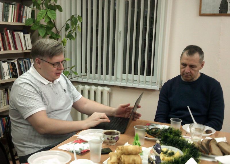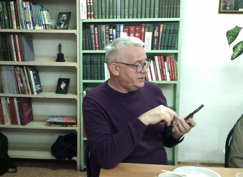 Уже четвертый год в преддверии новогодних праздников в библиотеке проходят встречи за круглым столом, на которых звучат стихи на разных языках. Бессменный модератор круглого стола - лексикограф, кандидат филологических наук Инна Александровна Карпова. Участники встречи подготовили свои любимые стихи на разных языках: русском, английском, немецком, белорусском, польском, татарском, сербском, испанском, итальянском, греческом... Изначально планировалась новогодняя тематика стихотворений, но потом она значительно расширилась: каждый читал те стихи, которые ему нравятся. Это было не просто чтение стихов, а своеобразная поэтическая эстафета, когда участники импровизировали, продолжая предыдущую стихотворную тему. В перерывах между чтением стихов - оживленная беседа, дегустация блюд белорусской кухни, приготовленных участниками встречи. На книжной выставке "Поэзия и проза на языках мира" экспонировались книги из домашних библиотек участников встречи и из фонда городской библиотеки № 6.