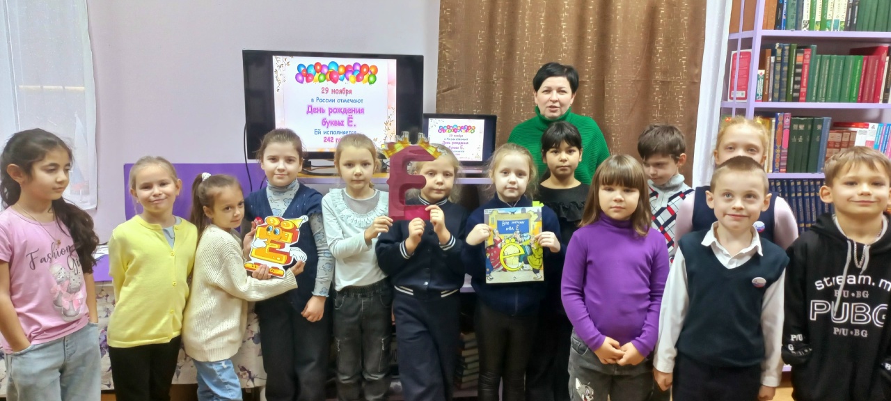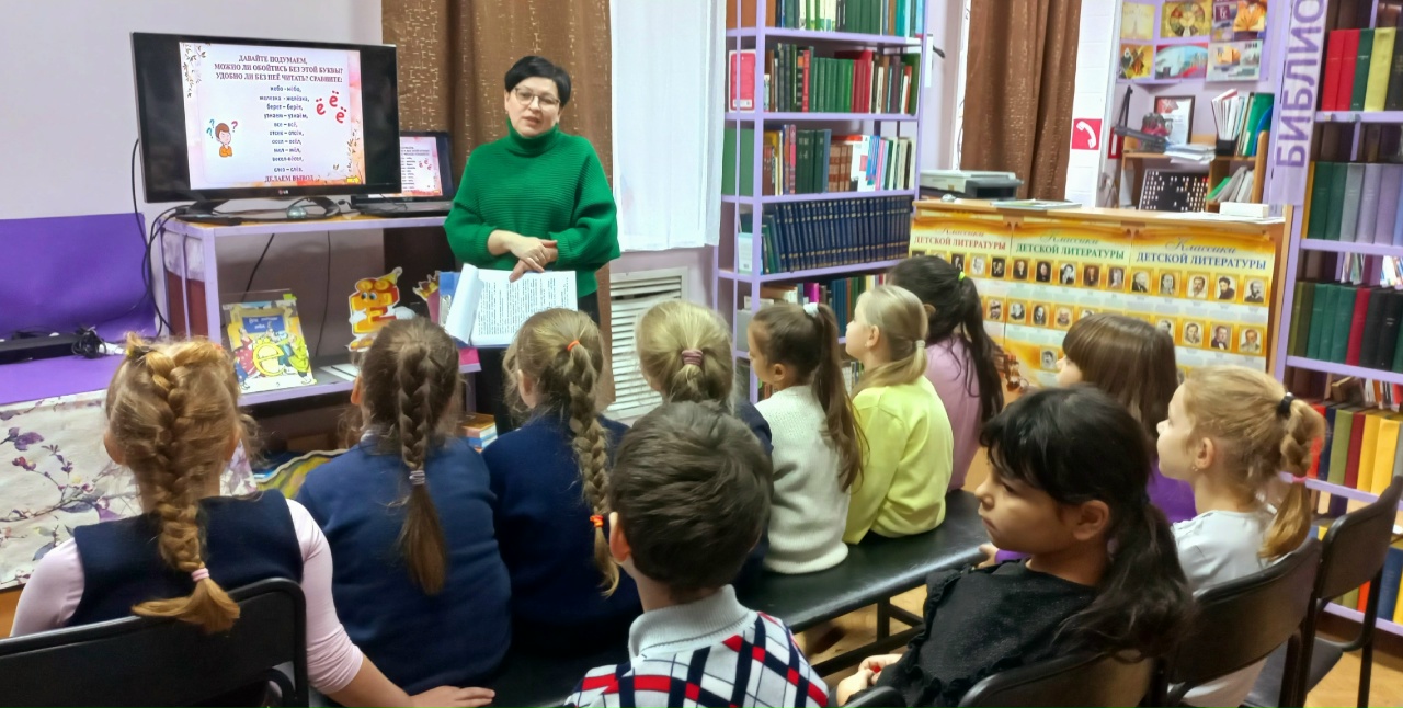 Поздравить самую молодую букву русского алфавита — «Ё» (ей всего лишь 242 года) — пришли первоклашки. Отправиться «назад в прошлое» и узнать непростую и очень интересную историю этой буквы ребятам помогла книга Марины Улыбышевой «Все точки над Ё». Выясняли, когда же без «Ё» не обойтись и в какие нелепые ситуации можно попасть, не будь двух маленьких точек. Приняли участие в занимательной интерактивной викторине «Поиграем и узнаем». Посмотрели мультфильм «Наш друг Пиши-Читай».