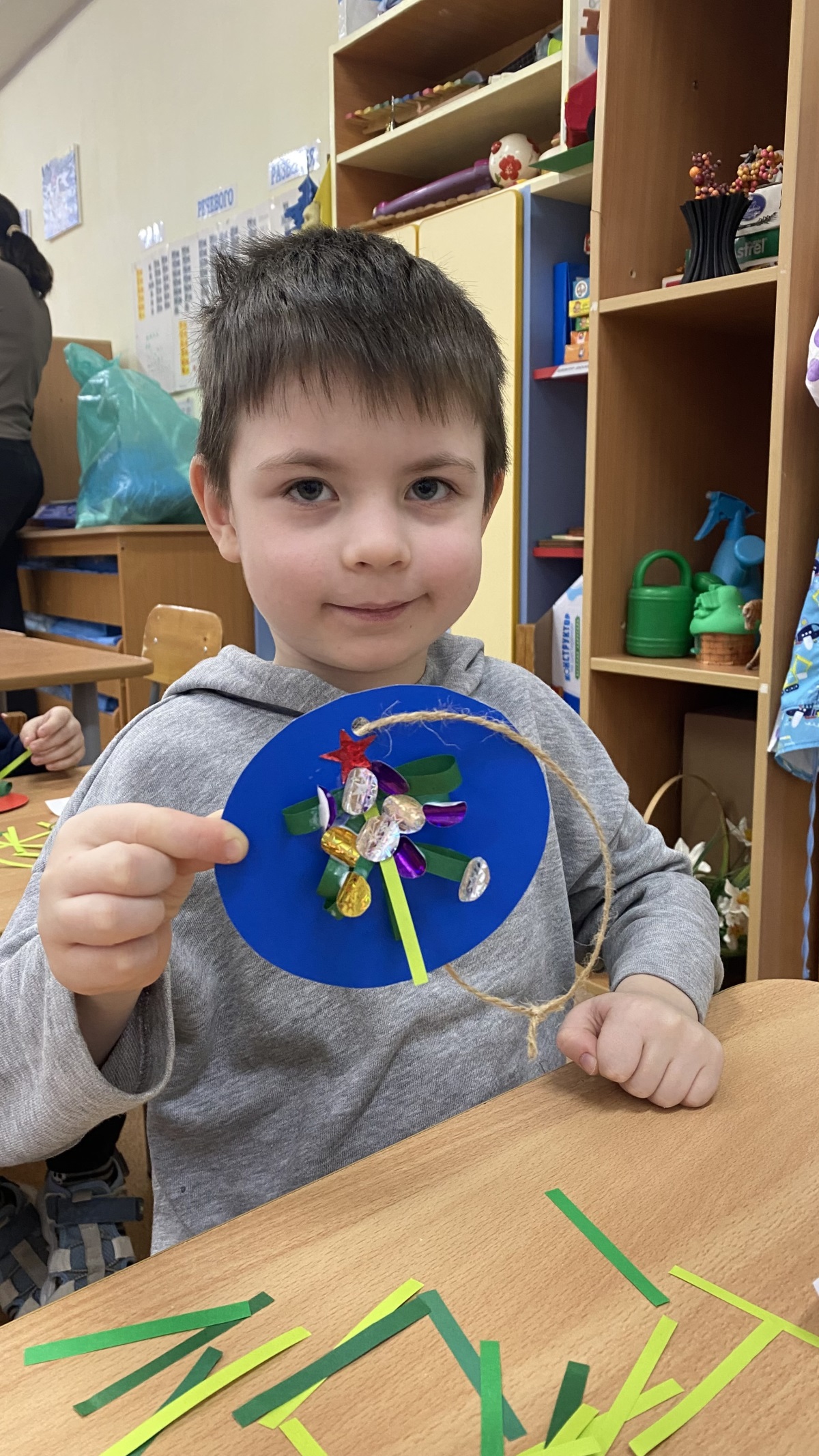 Под руководством сотрудников библиотеки ребята постарались создать новогодние украшения своими руками. Каждому ребёнку выдали цветной картон, бумагу и инструменты для творчества. Юные мастера с увлечением собирали композицию: в основе — аккуратный картонный кружок, а на нём — миниатюрная ёлочка из сложенной и нарезанной бумаги. Дети старательно выполняли приклеивали каждую деталь, внимательно следуя инструкциям и помогая друг другу. В процессе работы дети проявляли фантазию: выбирали любимые цвета, дополняли поделки блёстками. В конце мероприятия ребята смогли ознакомиться с новогодними выпусками любимых журналов.