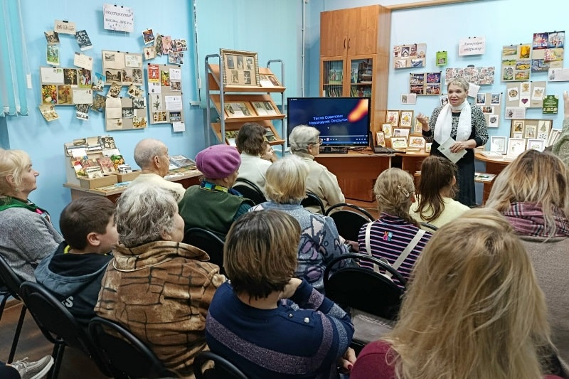 "Жизнь в открытках" - название выставки оправдывает себя на все сто процентов. Ведь глядя на открытки разных лет, начиная с начала 20 века и заканчивая 21 веком, видишь всю палитру жизни нашей страны. Вот Первомай, а вот Великий октябрь, а тут 1 сентября, а здесь вся история БАМа, история Тулы, праздник 8 марта и многое другое. Отдельная история - Новый год. Пожалуй, самые яркие и неповторимые, милые и душевные - это новогодние открытки. Приятный сюрприз был от тульского поэта Екатерины Сергеевны Картавцевой, которая прочла свое стихотворение о ларчике из открыток, которые делали умельцы в 70-80-годах. Эстафету приняли и современные художники, которые свои картины перенесли на открытки. Пейзажи В.Быняева, новогодние истории А. Порфирьевой, флористические сюжеты А. Дрягиной, Ясная Поляна Елены Беляковой, поэтические картины Э. Торос, тульские истории Наталии Харыбиной. Не обошли мы вниманием и такое явление в жизни открыток, как посткроссинг.