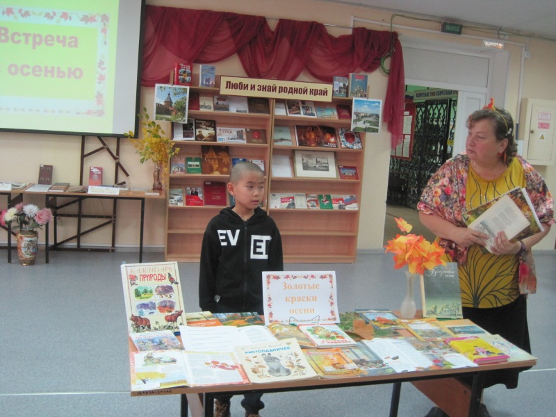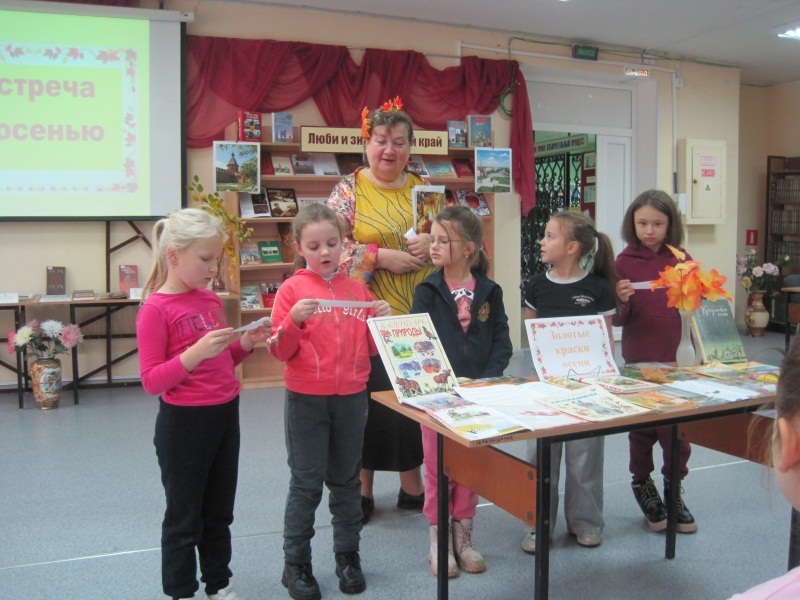 В гости к ребятам, посетившим мероприятие в библиотеке, пришла Бабушка-загадушка Осень. Она принесла с собой много интересных сокровищ для детей. Вспомнили приметы осени, узнали почему падают листья, отгадывали загадки и читали стихи про осень. А ещё бабушка Осень прочитала детям сказку Соколова-Микитова «Листопадничек», которую они с интересом послушали.
