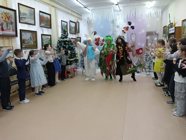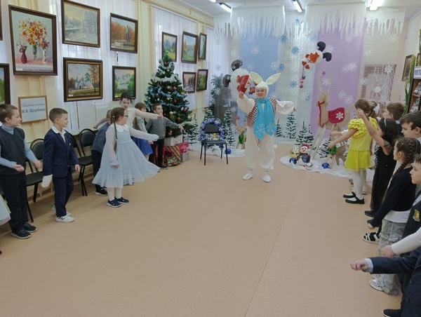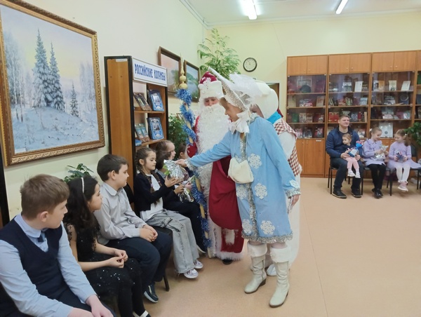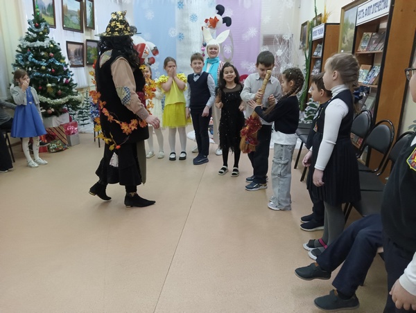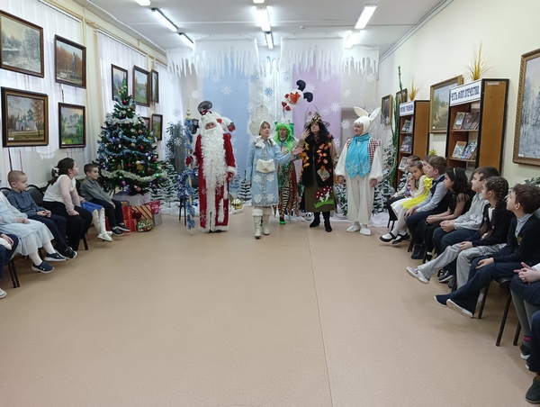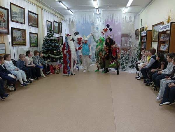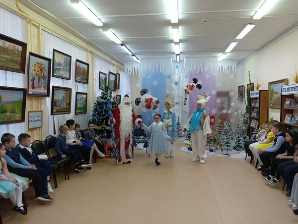 Юные читатели встретились с любимыми сказочными персонажами, которые разыграли новогоднее представление. В ожидании Деда Мороза и Снегурочки им пришлось побороться со злобной Ведьмой и Кикиморой, которые решили испортить праздник. Вместе с Зайцем ребята проходили испытания от злодеек, пели и танцевали. Кикимора представилась Снегурочкой, но участники сумели не только разоблачить обманщицу, но и сделать её добрее. А когда появилась настоящая Снегурочка с Дедушкой Морозом и зажглась новогодняя ёлка, наступил долгожданный праздник. Каждый смог исполнить для Деда Мороза любимую песню или стихотворение и обменяться добрыми пожеланиями с друзьями. В конце игровой программы все получили подарки от Деда Мороза и сфотографировались с ним на память.