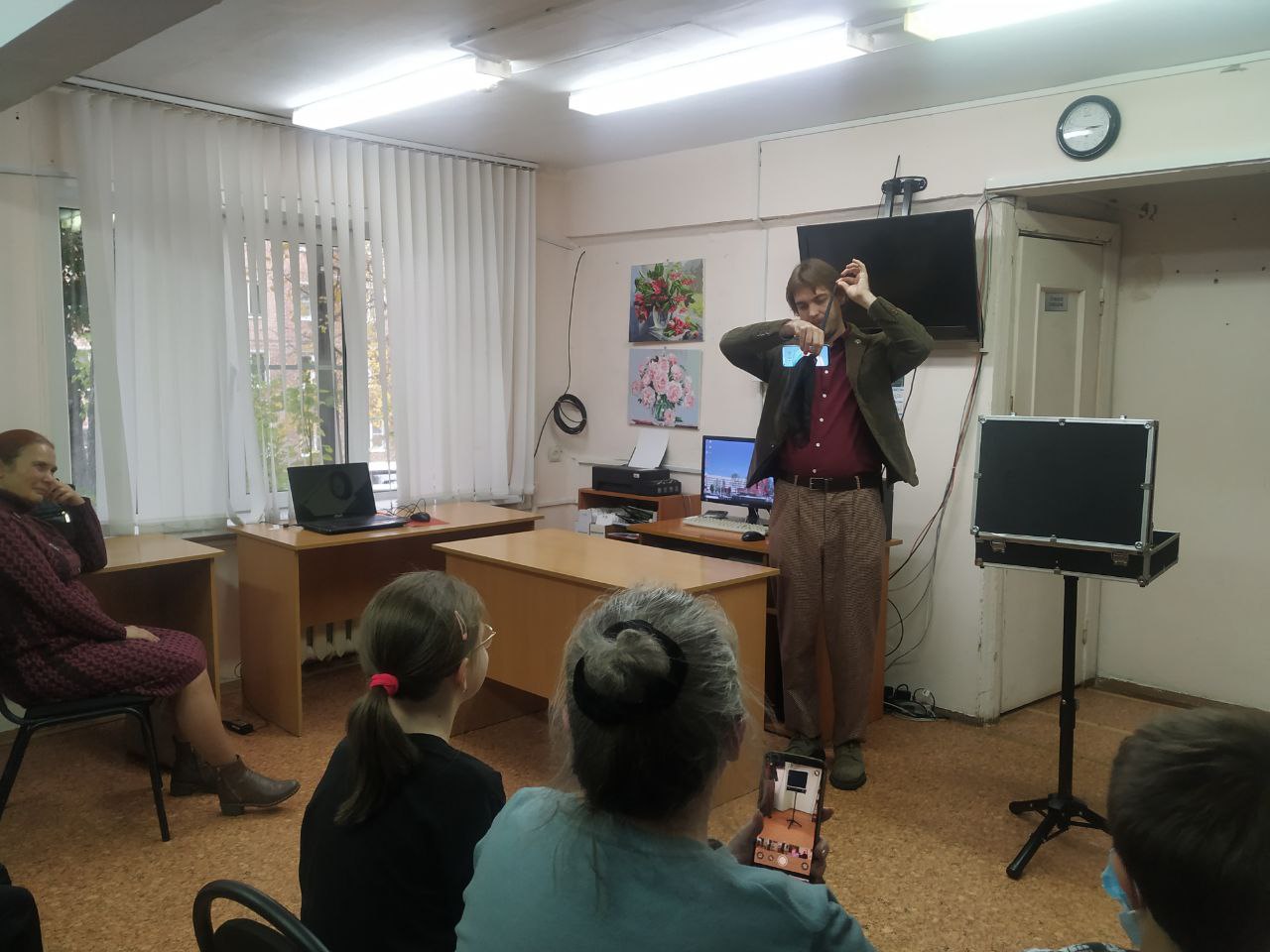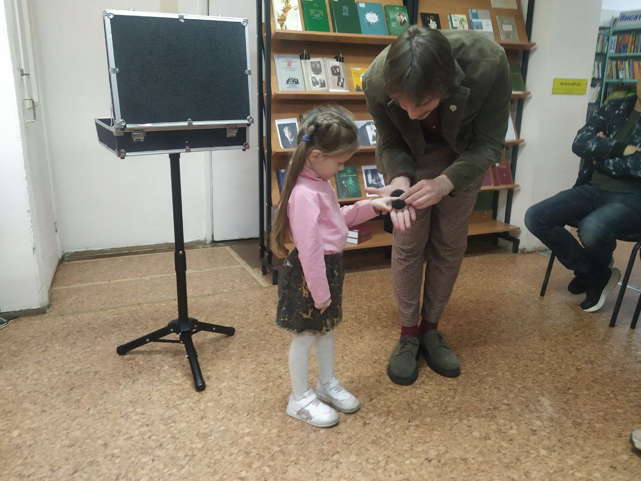 Искусство комедийного фокусника Игоря Чудакова поистине не имеет возрастных границ: люди приходили семьями: отцы с детьми, бабушки (и даже прабабушки) с внуками, родные сестры. На наших глазах совершались волшебные превращения, появления, исчезновения, за которыми мы все внимательно следили (и почти все были активными помощниками-ассистентами), но, как ни старались, не смогли постичь мастерство обращения с различными предметами! А в конце встречи, специально для наших маленьких зрителей, появилась Чуча - веселый пушистый зверек, которого трудно назвать игрушкой - в руках Игоря он живой! Спасибо Игорю Чудакову за яркие мгновения радости, за искусство, которое объединяет! Больше информации - в библиотечной группе вконтакте.