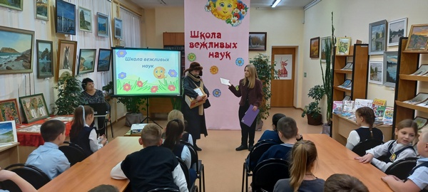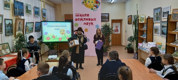 Мероприятие началось с просмотра ролика "Ералаш" о вежливости и обсуждения его сюжета и смысла. Затем почтальон Печкин принёс срочное письмо от Президента страны Вежливости с просьбой о помощи в поиске утерянных слов. Правильно выполнив задания "Отгадай кроссворд", "Картина" и решив ребусы о вежливых словах, юные читатели нашли утерянные выражения и спасли страну Вежливости. В благодарность Президент сделал ребят её полноправными гражданами. Мероприятие украшала книжная выставка "Школа вежливых наук".