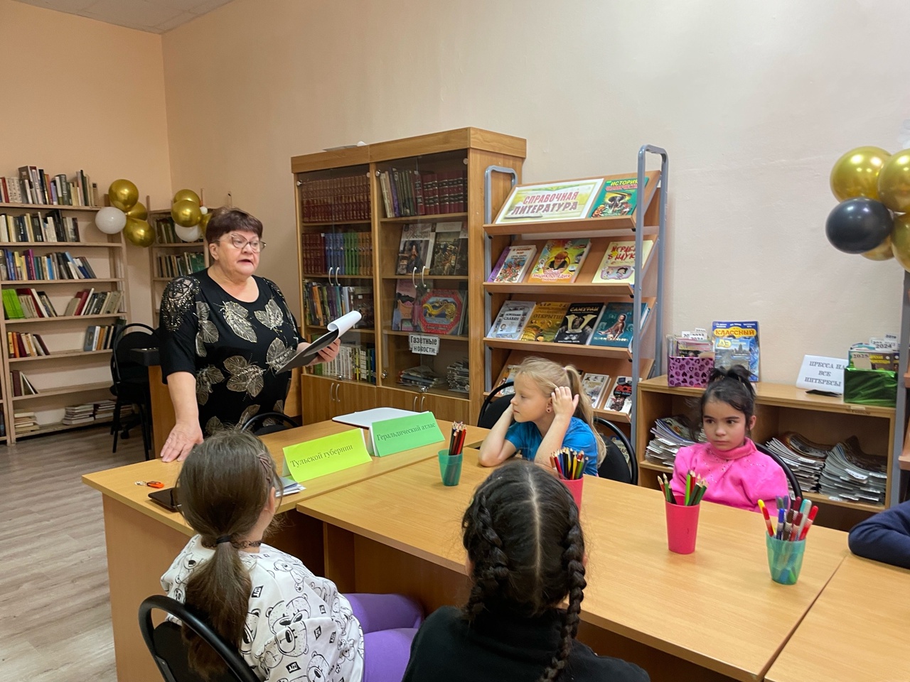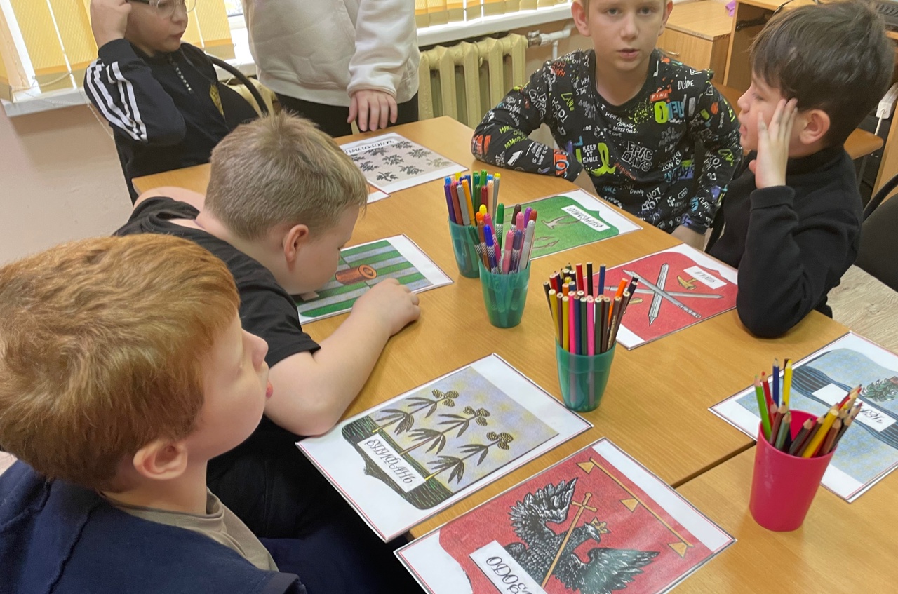 Сотрудник музея школы для обучающихся с ОВЗ №4 посетил библиотеку с познавательным мероприятием по краеведению, посвященному геральдике Тульской губернии. Дети смогли узнать об истории геральдики, символике разных элементов герба и принципах их расположения. Подробно был рассмотрен герб каждого города: присутствующие узнали об истории губернии и ее уездов, отображенной через символы гербов. Когда ребята ознакомились с исторической частью мероприятия, им было предложено создать собственный герб, используя уже знакомую символику, и придумать девиз, отображающий смысл созданной композиции.