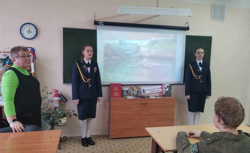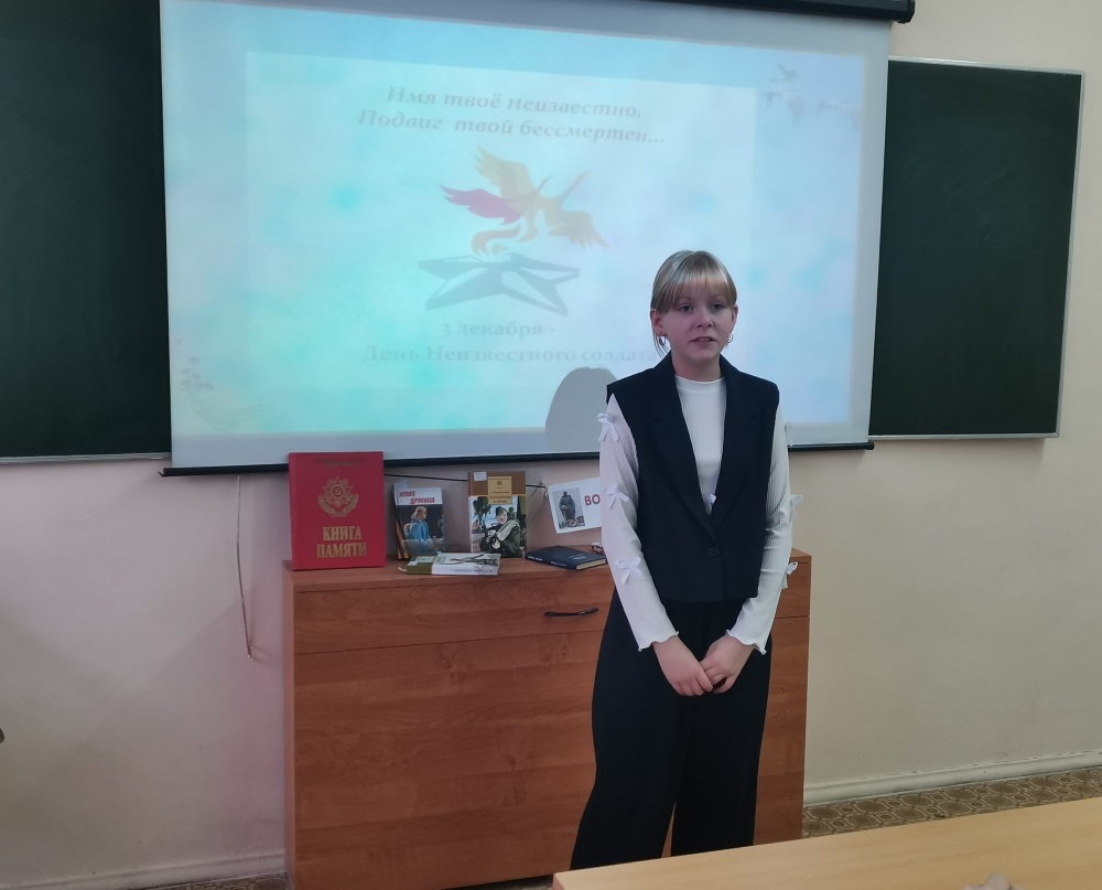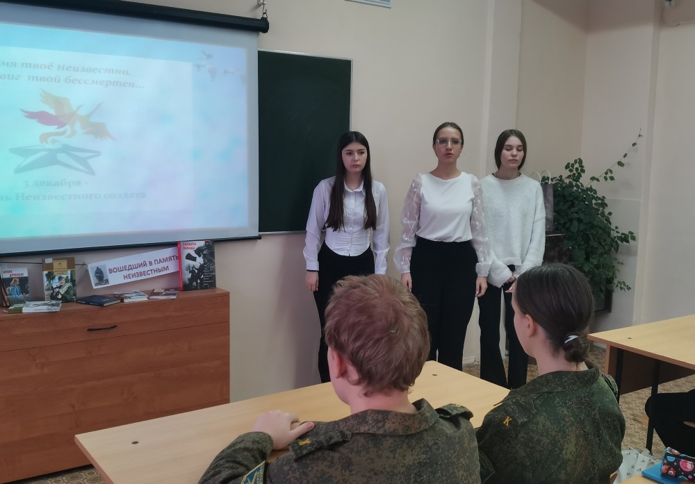 Ребята с неподдельным интересом слушали рассказ о том, как создавался величественный мемориал Неизвестному солдату в Москве, ставший символом скорби и вечной памяти о миллионах павших. Чтение стихов помогло им почувствовать ту атмосферу героизма и самопожертвования, которая царила в годы войны. Во время мероприятия, звучали песни военных лет. Школьники узнали о работе волонтеров – поисковиков Тульской области. Минутой молчания школьники почтили память всех тех, кто отдал свою жизнь в годы войны. Этот урок стал напоминанием о том, что история нашей страны, её победы и трагедии, должны жить в сердцах каждого из нас, передаваясь из поколения в поколение.