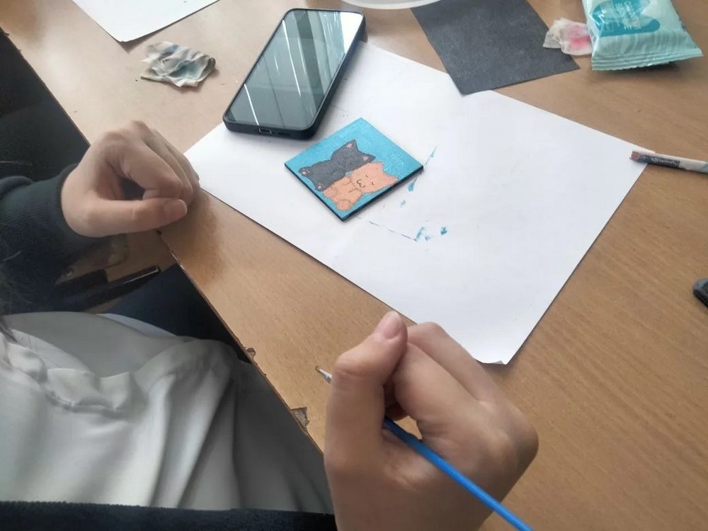 Сегодня дети погрузились в мир творчества: они создавали миниатюрные картины размером 7,5×7,5 см на холстах, закреплённых на магнитах. Смешивая краски и фантазию, ребята доказали: искусство не в масштабе, а в душе! Мальчишки и девчонки выбрали понравившиеся изображения, с помощью копировальной бумаги аккуратно перенесли их на холсты, а затем с огромным вдохновением раскрасили яркими акриловыми красками. Результатом были уникальные персональные сувениры, которые можно разместить на любой металлической поверхности и каждый день вспоминать о творческом дне!