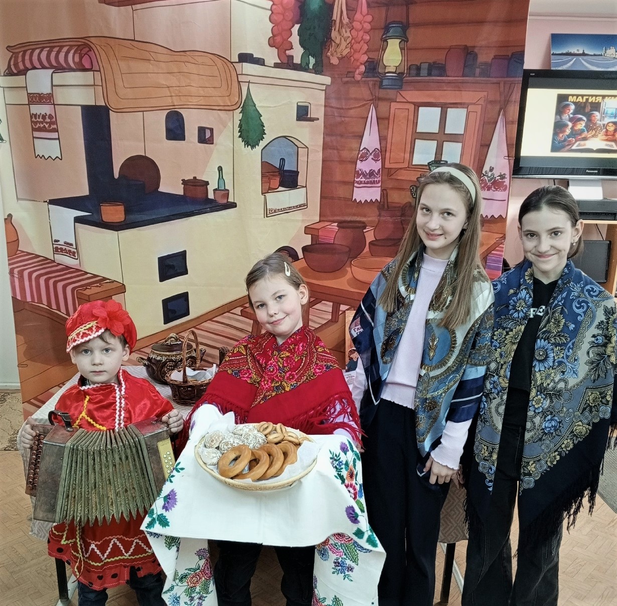 17 апреля библиотека пригласила мальчиков и девочек на увлекательное интерактивное путешествие по сказочным местам России. Гостей «Магии книги» ждали: фотозона «Мир дому твоему»; книжные выставки «Дружат сказки всей страны», «На родных просторах», «Сказка мудростью богата»; демонстрация видео ряда «Гора самоцветов»; игровой досуг «Делу время, потехе час»; театральные зарисовки «Жили-были сказки»; сказочные истории «Волшебство слова» (встреча с членом Союза художников России, детским писателем Андреевой О. А.); авторский мастер – класс «Голубь мира», провела который член Союза художников России, детский писатель Андреева О. А. Все перечисленные локации сопровождались традиционной народной музыкой, вкусными угощениями, заинтересованными лицами гостей и их веселым смехом.