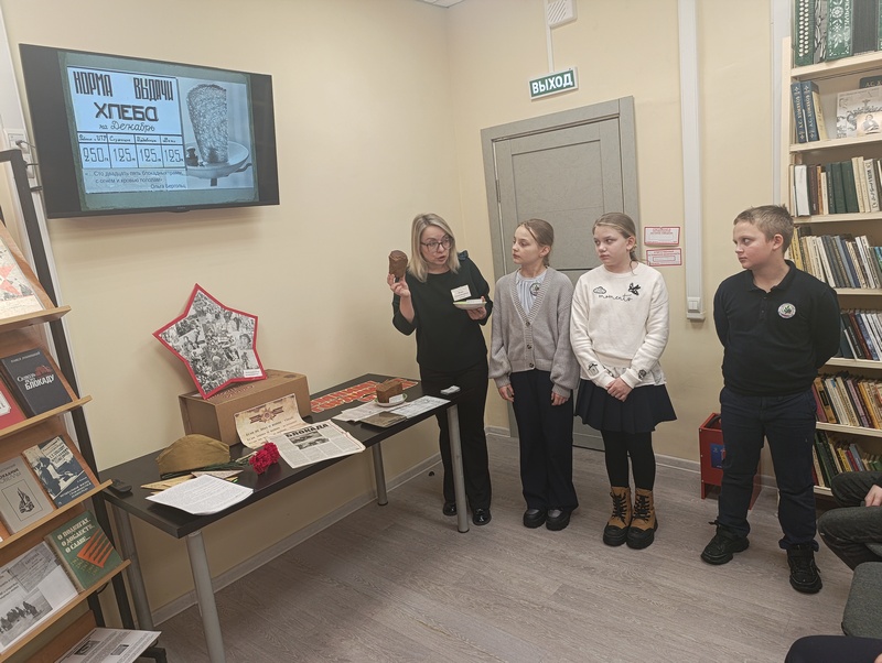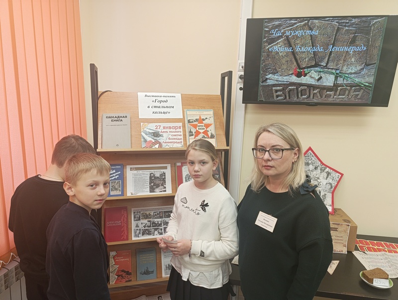 27 января 2026 года исполняется 82 года со дня полного освобождения Ленинграда от фашистских захватчиков. Ребята узнали о тяжелых испытаниях, выпавших на долю жителей осажденного города Ленинграда: о голоде и холоде, о невыносимых условиях жизни, о норме блокадного хлеба, о "дороге жизни", которая связывала блокадный город с "большой Землей", о постоянных бомбежках и обстрелах, о ленинградской школьнице Тане Савичевой, о детях, которые переживали неприятности, страх, ужас потери родных, оставались сиротами, о женщинах и подростках, работавших наравне с мужчинами на заводах. В конце мероприятия дети познакомились с тематическими книгами на выставке «Город в стальном кольце».