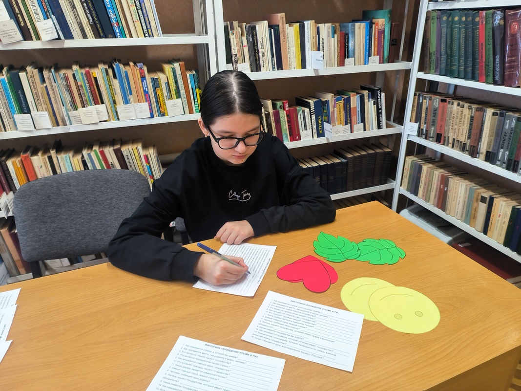 Воссоединение Крыма с Россией — это исторический момент, который навсегда останется в наших сердцах. Этот день символизирует единство и возвращение к родным корням, когда многовековая история и культура вновь объединились под флагом нашей страны. В начале игры библиотекарь рассказала об истории возникновения полуострова, о пути возвращения Крыма и о значении его для России, о героях Крымской войны 1853-1856 гг. и героях Великой Отечественной войны, которые навечно вписаны в летопись славы России. В ходе игры участники смогли показать свои знания, отвечая на интересные и, порой, очень сложные вопросы, содержащие информацию об исторических фактах из жизни полуострова, о тех событиях, которые происходили в дни «Крымской весны».