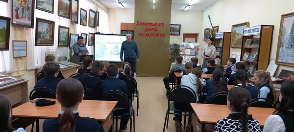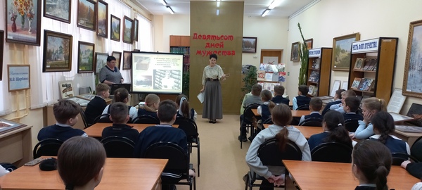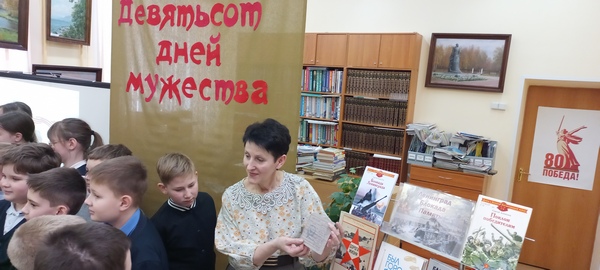 27 января отмечается День воинской славы России – День снятия блокады города Ленинград. С помощью видеопрезентации сотрудники библиотеки рассказали школьникам об одном из самых трагических эпизодов Великой Отечественной войны. Учащиеся узнали, что Ленинград – единственный город в мировой истории, который смог выдержать почти трёхлетнюю блокаду и что, несмотря на тяжелейшие испытания, ленинградцы всё же находили силы, чтобы быть достойными своих отцов и братьев, ушедших на фронт. Ведущие рассказали о детях, которые продолжали учиться в блокадном промёрзшем городе, о дневнике Тани Савичевой – страшном свидетельстве ужасов войны. С помощью интерактивной книжной выставки "Ленинград. Блокада. Память." каждый смог увидеть 125-граммовый кусочек хлеба и представить, от чего зависела жизнь каждого ленинградца.