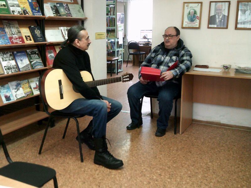 Накануне 8 Марта почти полтора часа музыки, песен, интересного общения подарили посетителям литературной краеведческой гостиной автор и исполнитель Александр Никитушкин и впервые присоединившиеся к нему исполнители Сергей Кондратеня и Игорь Приходченко. Получился яркий праздничный калейдоскоп песен - как авторских (Александр Никитушкин), так и песен из репертуара популярных исполнителей. В концептуально выстроенной песенной программе было место и любовной лирике, и шансону, и веселым зажигательным песням. А бессмертные песни "Катюша" и "Подмосковные вечера" пели все вместе! В конце встречи мощной кодой прозвучала песня из репертуара Валерия Ободзинского "Только да!" - ее исполнил Александр Никитушкин. Спасибо участникам предпраздничного концерта за подаренное весеннее настроение!