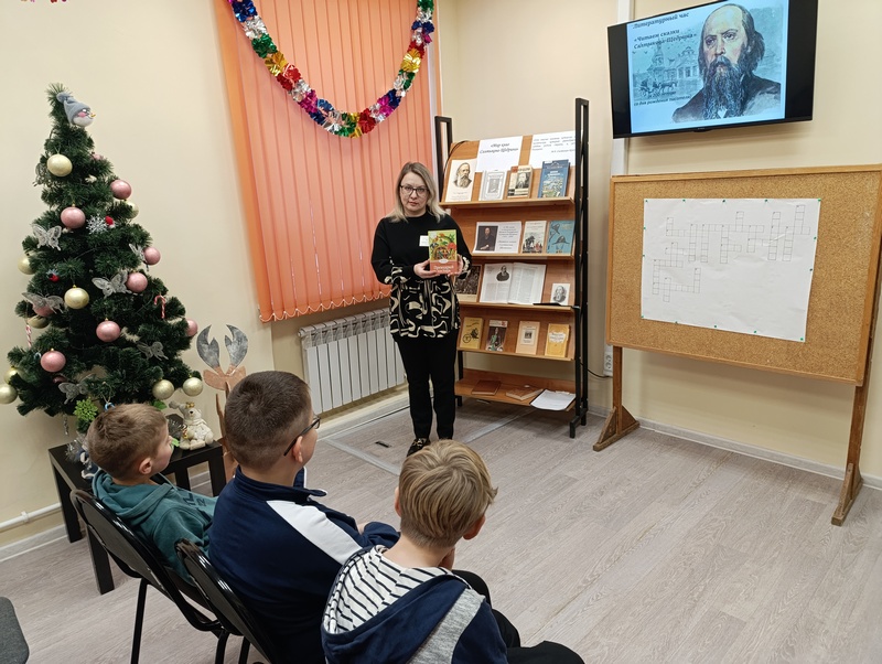 27 января 2026 года исполняется 200 лет со дня рождения великого русского сатирика М.Е. Салтыкова-Щедрина. Творчество М.Е. Салтыкова-Щедрина чрезвычайно многообразно. Но среди огромного наследия сатирика едва ли не наибольшей популярностью пользуются его увлекательные сказки, читать которые любят как взрослые, так и дети. Дело в том, что они не похожи на другие, так как богаты яркими образами и оригинальными сюжетами. Сказки как бы подводят итог сорокалетней творческой деятельности писателя. В ходе мероприятия библиотекарь познакомила присутствующих с жизнью и творчеством писателя и рассказала о его связи с тульским краем. Собравшиеся посмотрели мультфильмы по сказкам «Премудрый пискарь» и «Как мужик двух генералов прокормил». В конце мероприятия разгадали кроссворд по сказкам.