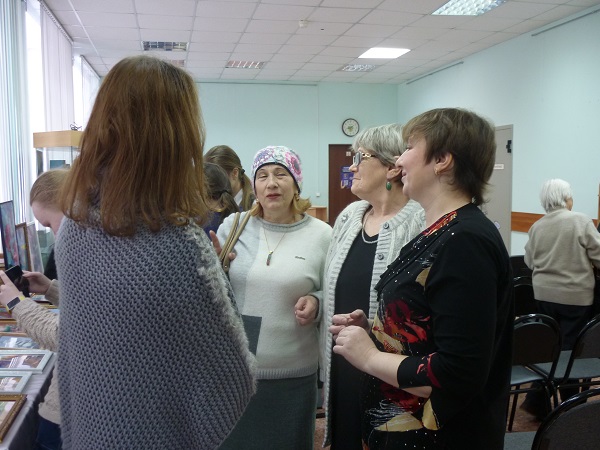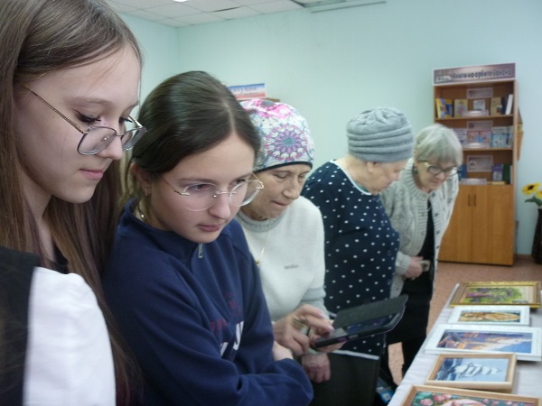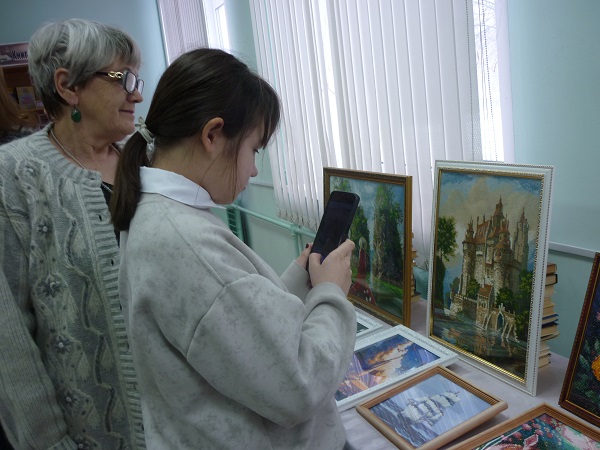 В экспозиции представлены настоящие маленькие шедевры, которые поражают своей красотой и наполняют позитивными эмоциями. Автором работ является давний друг нашей библиотеки Светлана Валерьевна Вытягова. Светлана Валерьевна рассказала об истории создания техники алмазной вышивки и о своем увлечении этим удивительным видом рукоделия, ответила на многочисленные вопросы присутствующих и провела экскурсию по выставке. Заключительной частью мероприятия стала небольшая концертная программа Светланы Валерьевны. Она представила на суд зрителей свои новые авторские стихи и порадовала красивыми песнями.