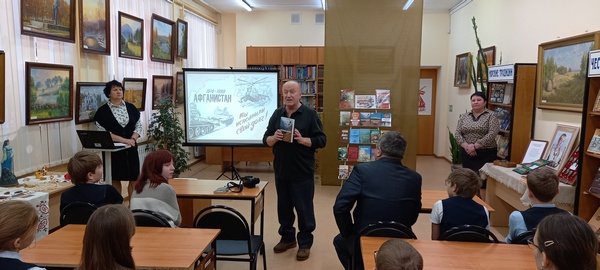 С помощью электронной презентации библиотекари рассказали о том, что через войну в Афганистане прошло огромное количество солдат и офицеров, и, к сожалению, не все вернулись домой. Ребята совершили экскурс в историю этого сложного периода, который длился более девяти лет и стал настоящей болью для миллионов людей. В ходе урока были представлены кадры документальной кинохроники, которые позволили увидеть реалии войны и понять, как она повлияла на судьбы солдат. На мероприятии присутствовали непосредственные участники афганских событий. Представитель Всероссийской общественной организации ветеранов «Боевое Братство» Кудрин В.И. поделился своими воспоминаниями, рассказал о том, как воевал и за что получил награды. А представитель Всероссийской общественной организации "Российский Союз ветеранов Афганистана" Макаров Н.А. рассказал о своей книге "Они воевали за речкой", повествующей о туляках, участниках войны в Афганистане. К мероприятию была оформлена библиотечная выставка "Афганистан"