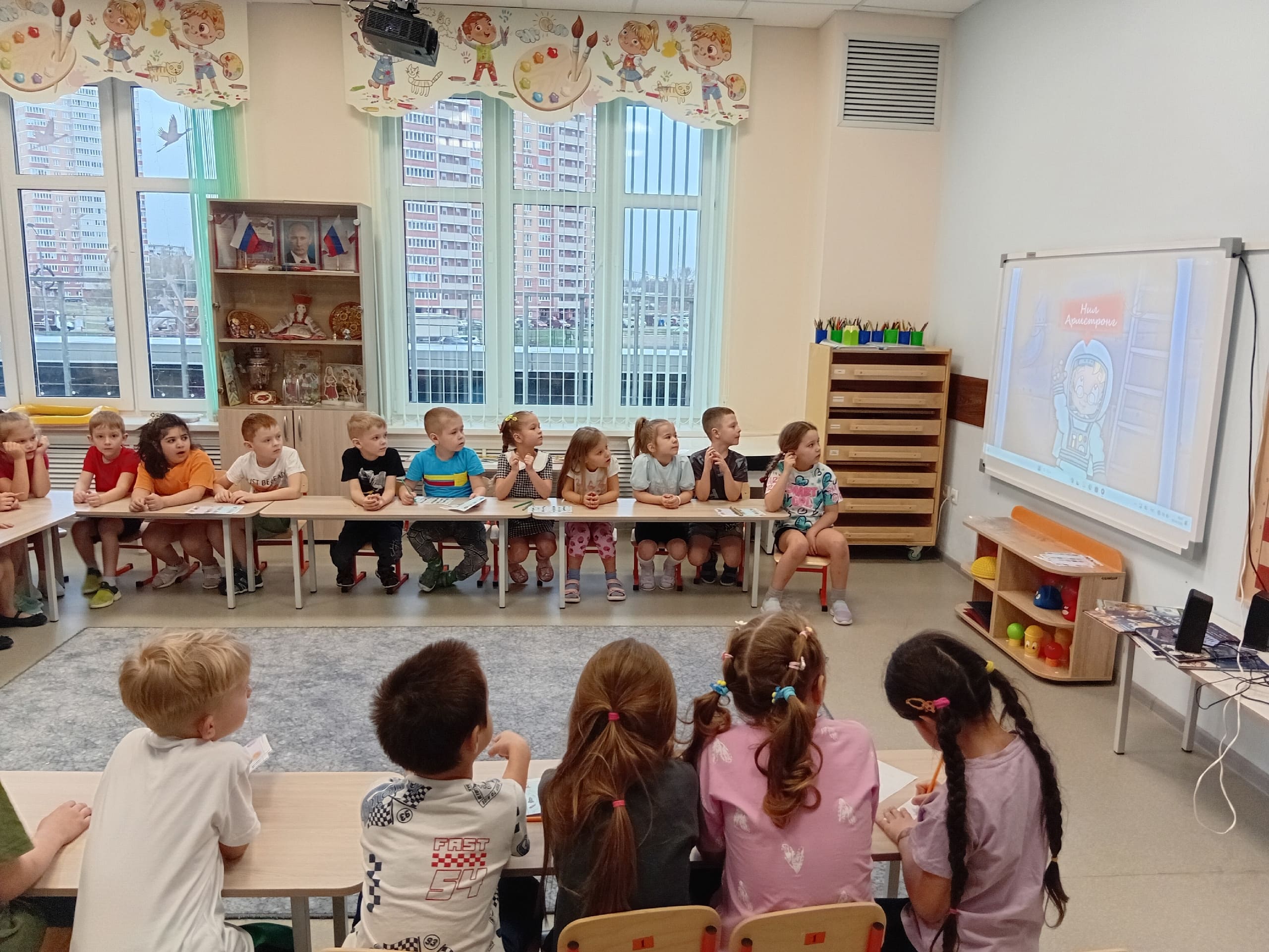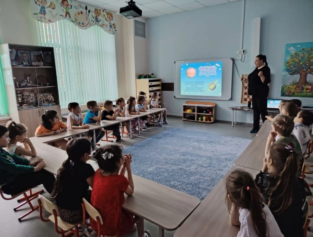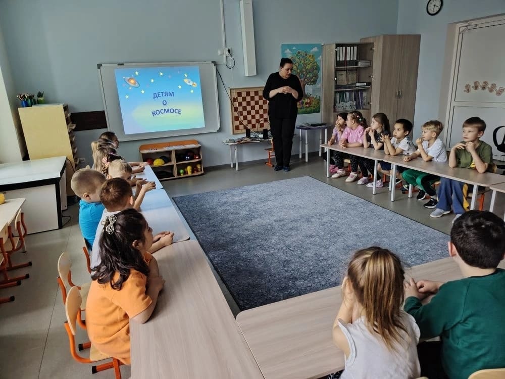 Ребята узнали: кто был первым человеком в космосе (конечно, Юрий Гагарин!); как звали первых четвероногих космонавтов; что такое невесомость и зачем нужен скафандр; сколько планет в Солнечной системе и как они называются. Дети с легкостью выполнили весёлую космическую физминутку и разгадали самые сложные космические задания.