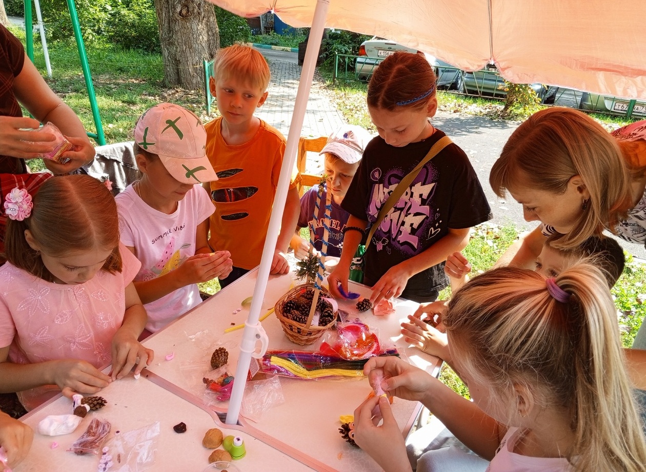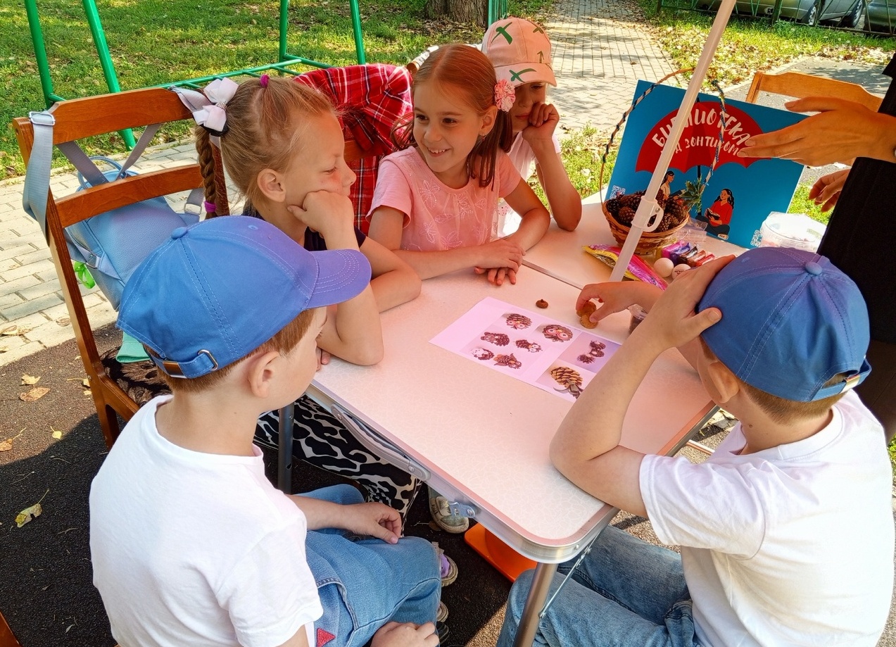 В этот день библиотекари порадовали ребят разнообразной программой мероприятия. Творческий мастер-класс «Веселая шишка» показал насколько необычными могут быть поделки из простой сосновой шишки. У детей получились крокодилы, совы, филины, мышки, котята, ананасы и даже поезд. Вот это фантазия! Чтобы детвора не засиделись, сотрудники библиотеки организовали спортивные игры: «Скачки», «Руки-ноги», «Вышибала» и др.